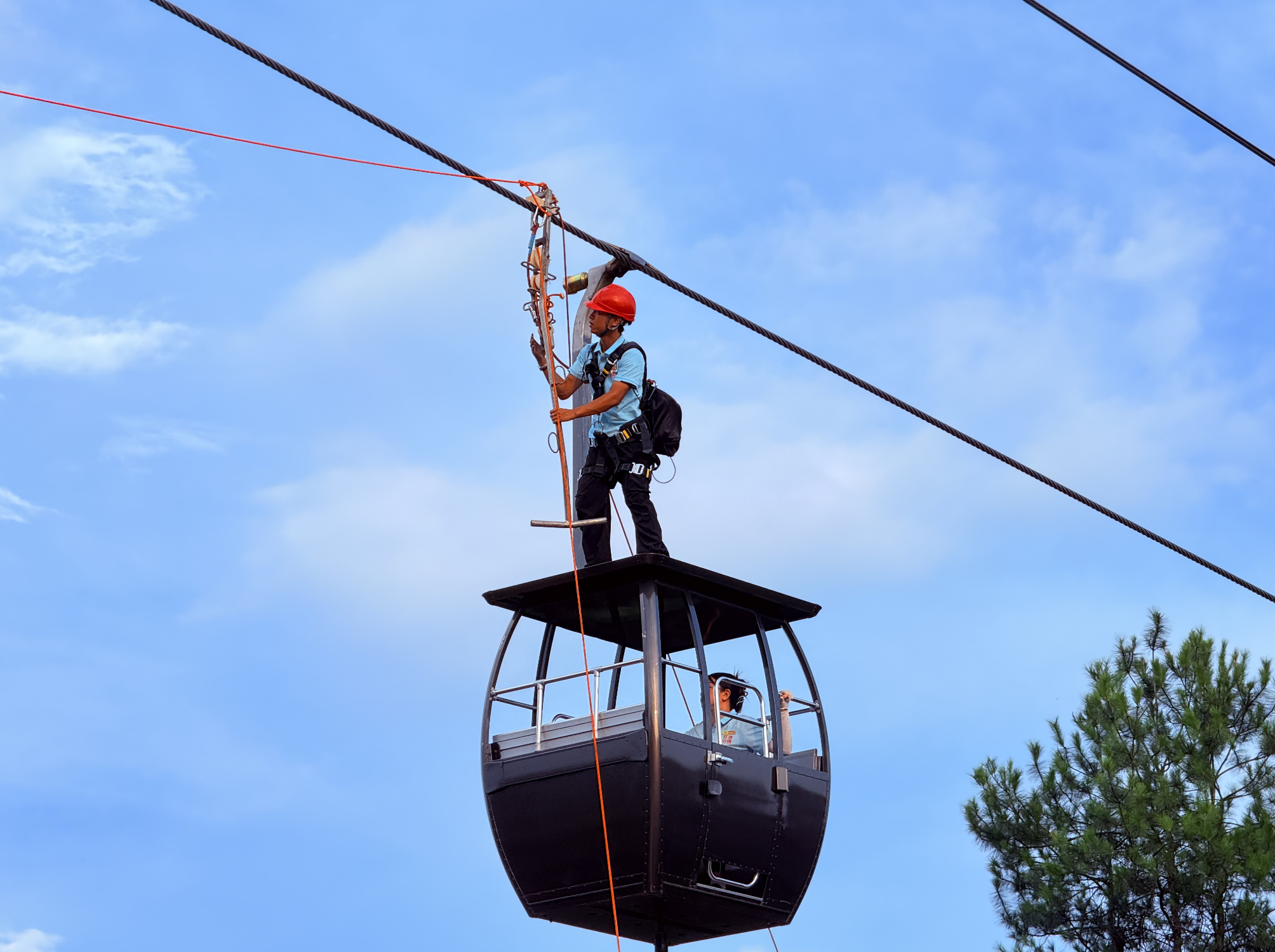重庆涪陵:高空实战演练 索道救援守护游客安全