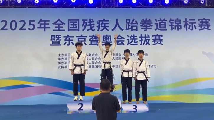 近日,2025年全国残疾人跆拳道锦标赛暨东京聋奥会选拔赛在青岛市民健身中心举行。綦江区听力残疾人运动员胡太军在KP60男子成年组个人80公斤级以上比赛中,荣获金牌1枚。