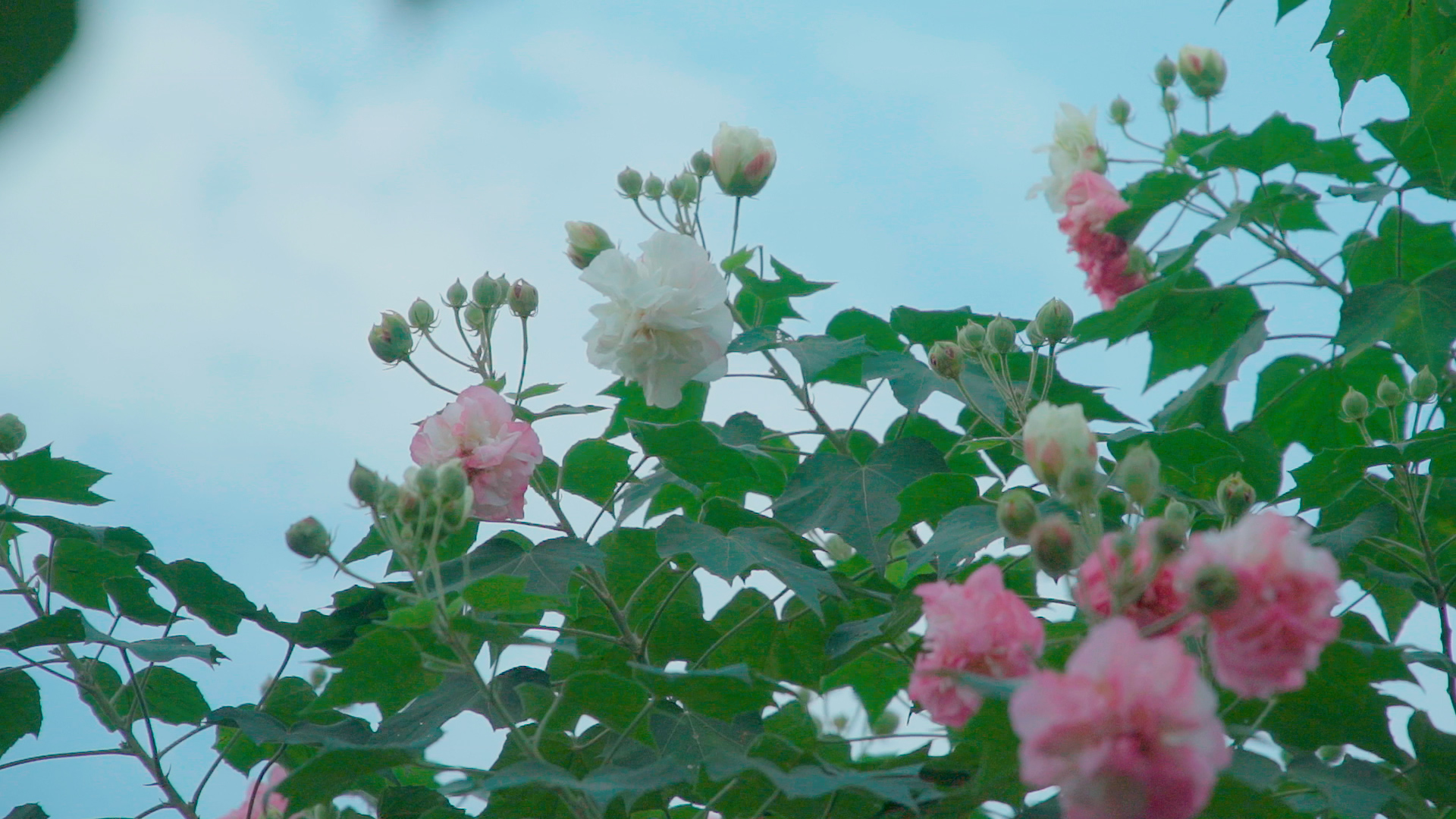 每年秋天,都是木芙蓉花盛放的季节。在綦江,遍布城乡的木芙蓉花竞相绽放,粉白相间的花朵在微风中摇曳生姿,犹如一幅幅美丽的画卷。木芙蓉开花期间,花朵繁盛而色丽,有“照水芙蓉”的美称。芙蓉花因光照强度不同,引起花瓣内花青素浓度变化,早晨开放为白色或浅红,中午和下午则为深红色,有“三醉芙蓉”“弄色芙蓉”“鸳鸯芙蓉”的美称。