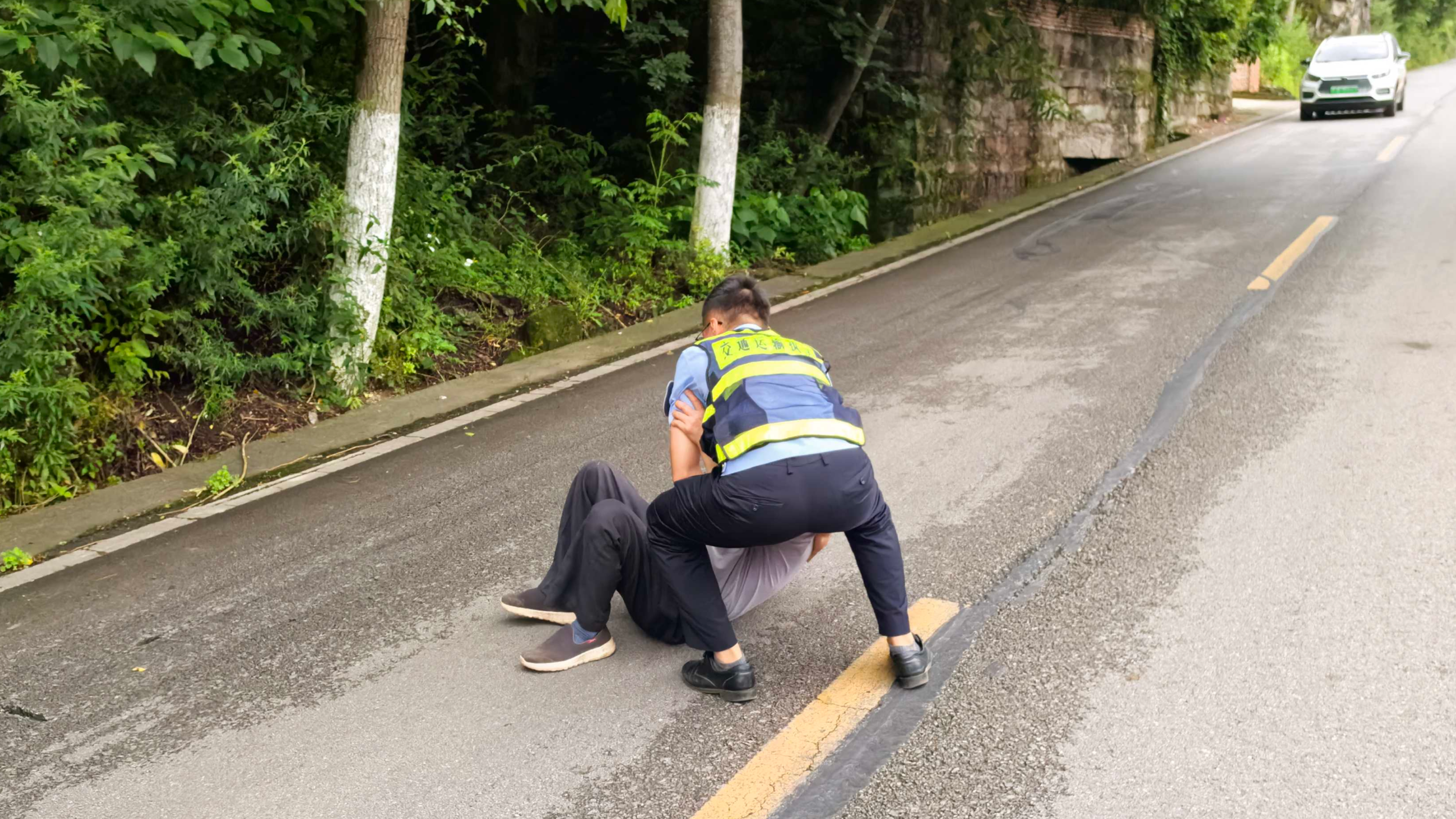 6月9日,忠县白石镇一名七旬老人在独自外出时不慎摔倒,一时动弹不得,好在被巡逻至此的交通执法人员发现,及时将老人扶起,并将老人安全送回。