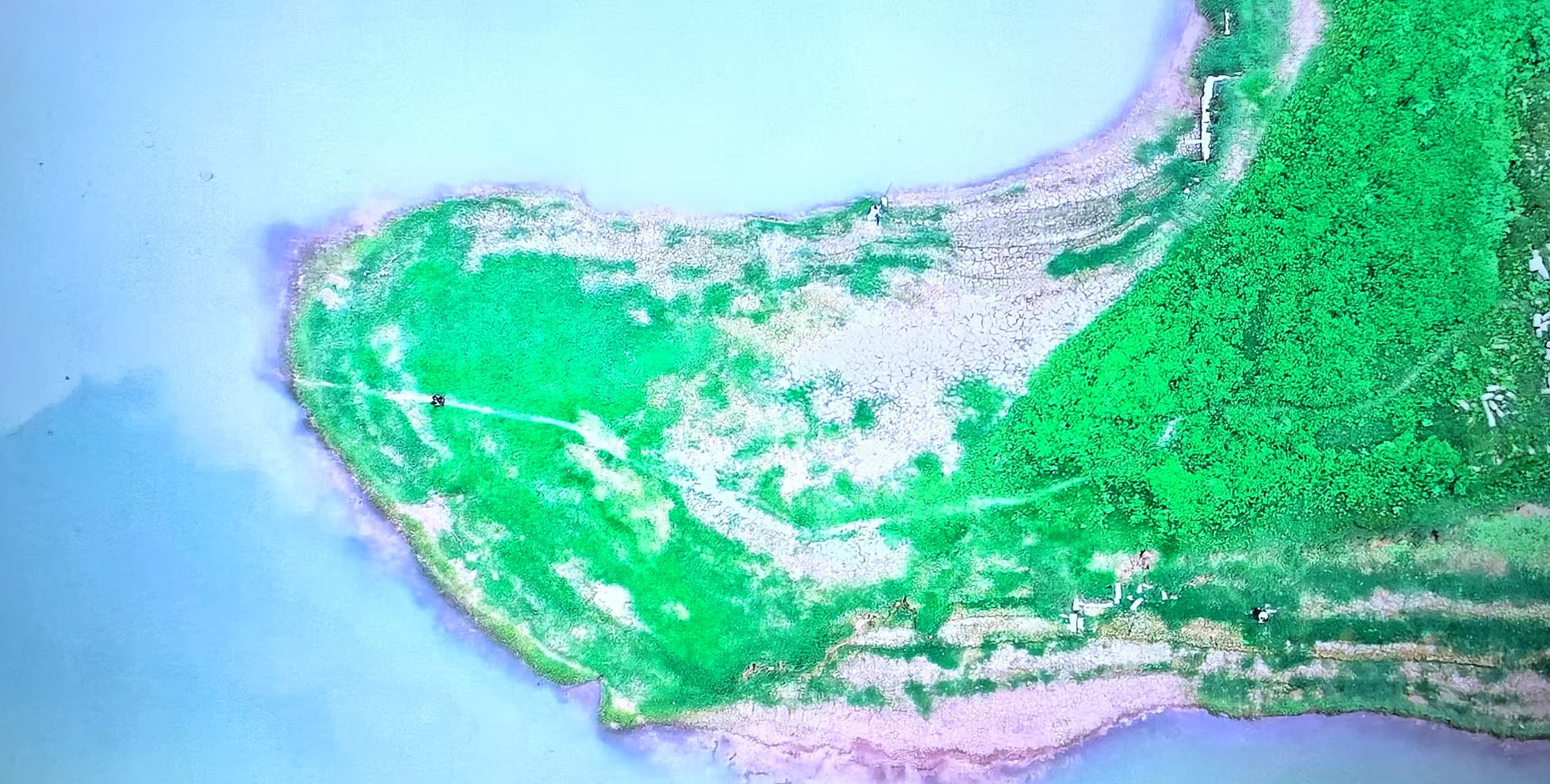 夏日到来,三峡水库持续腾库,以抵御可能到来的洪峰,库岸的江滩变成了青青草原。