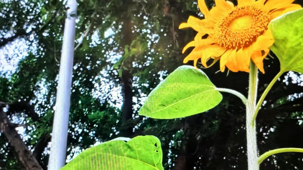 在万州高考考场外,市民蒋燕为妹妹送了一棵自己亲生种的向日葵,为妹妹送去良好祝福。