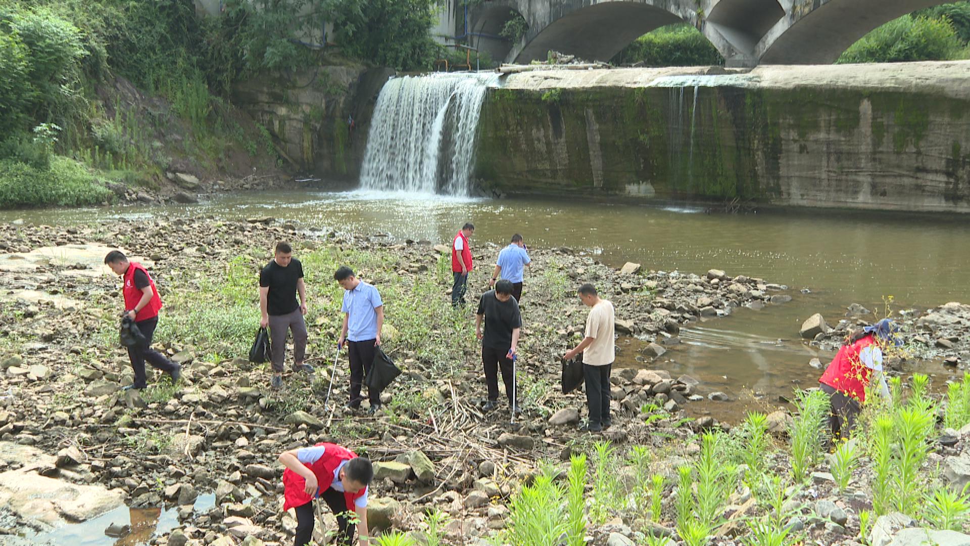 忠县:志愿者清理河道垃圾 做生态保护的守护者