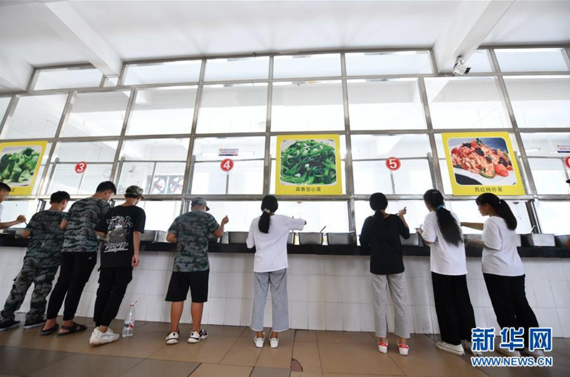 9月1日,在广西融水苗族自治县丹江中学,学生在按需自行选菜。 近年来,广西融水苗族自治县部分学校推行“自助营养午餐”的供餐形式,旨在减少单一供餐造成的浪费现象。