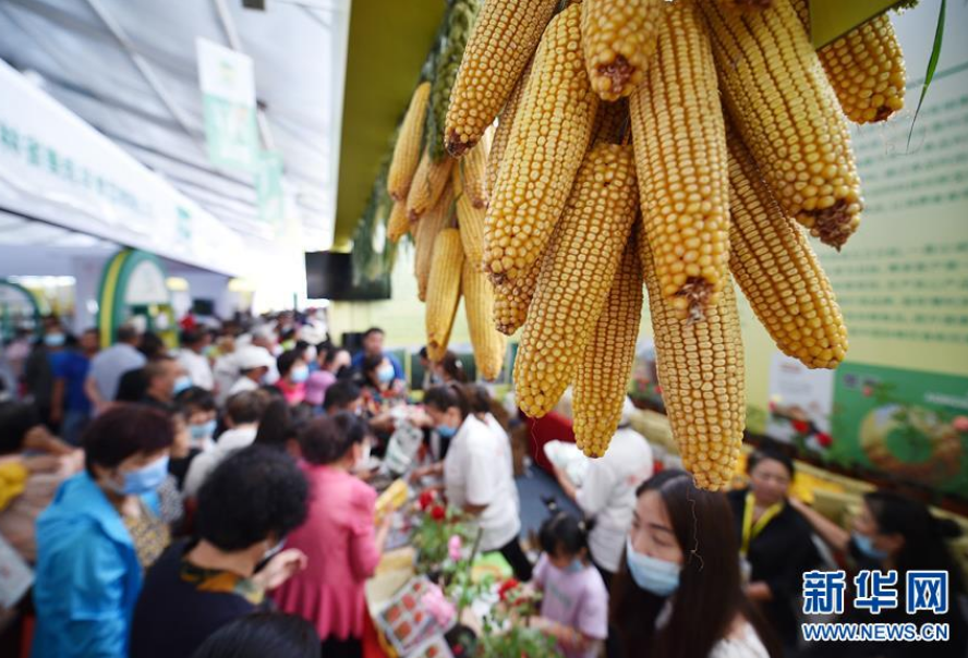 8月20日,参展商在第七届中国·公主岭玉米产业博览会上用直播的方式推荐商品。