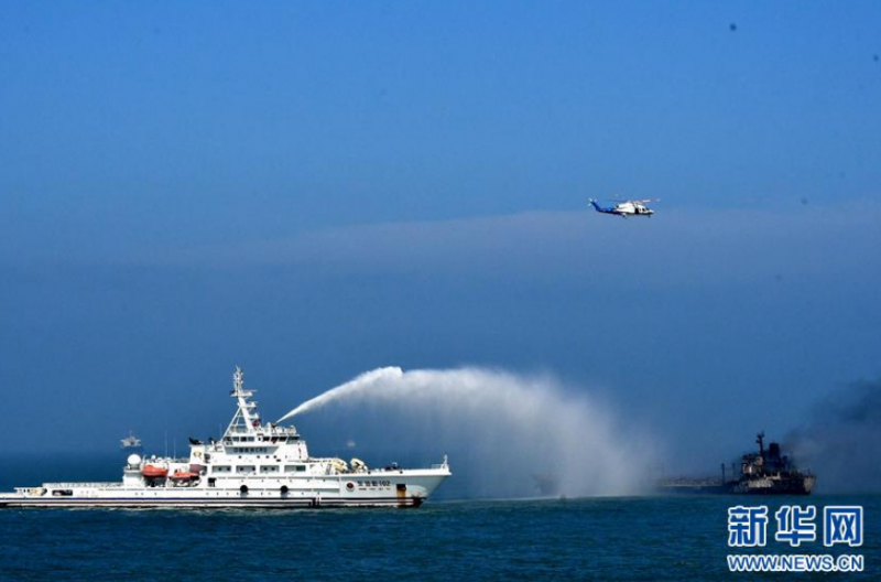 8月20日,搜救船只和救助直升机对发生碰撞的油船实施灭火救助。
