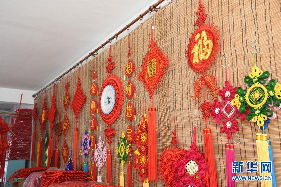 在黑龙江省伊春市南岔县妇女创业孵化基地,王立志正在桌子前熟练地编织中国结。琳琅满目、大小不一的各式中国结把不大的工作室装点得格外红火。