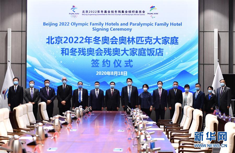 8月18日,北京2022年冬奥会和冬残奥会大家庭饭店签约仪式在北京冬奥组委园区举行。