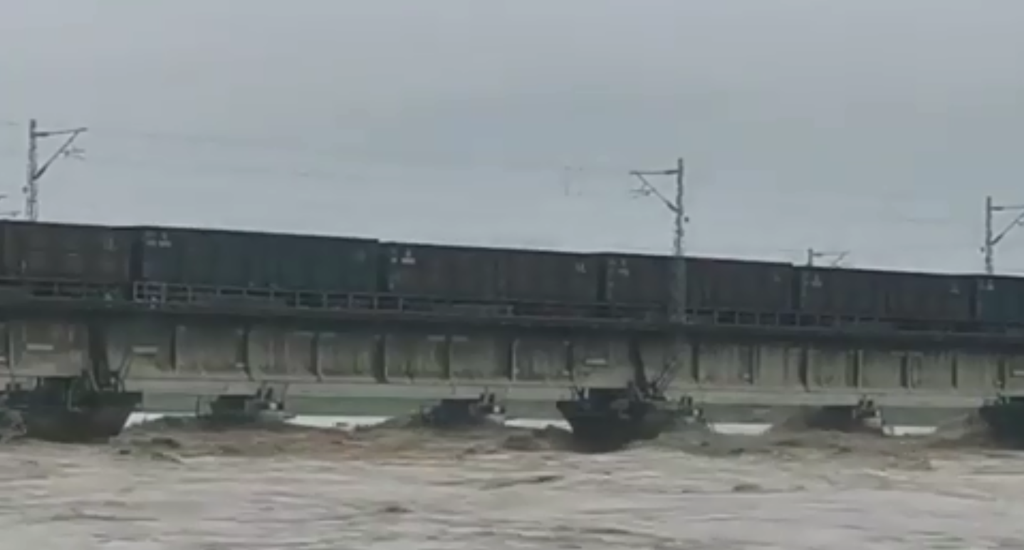 洪水袭击宝成铁路涪江大桥 超8100吨“重车压梁”护桥