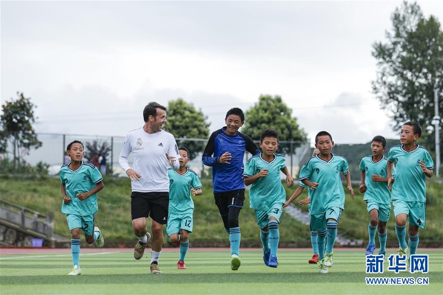 在四川省昭觉县拉莫足球场,昭觉皇家马德里足球队刚结束传球训练赛。