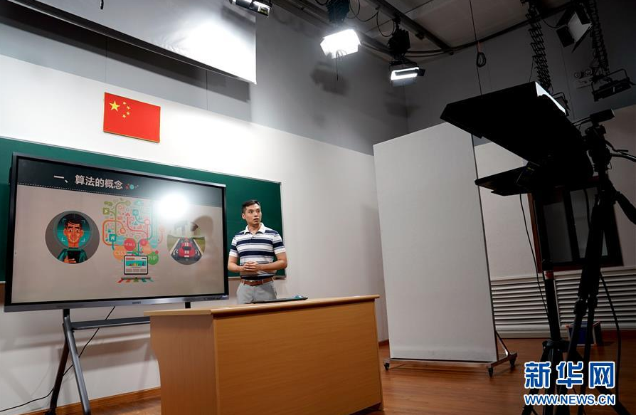 8月31日,在徐汇区教育学院,上海交通大学附属中学的教师孙悦在录制新学期的高中语文课程。