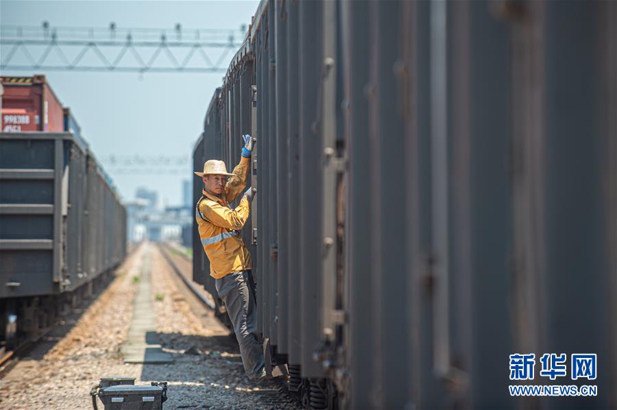 8月11日,浙江杭州的最高气温超过37摄氏度。在杭州北郊的铁路乔司编组站,调车员们顶着骄阳作业。他们将一节节车厢重新编组,发向目的地,用自己的辛勤汗水,保障着铁路大动脉的顺畅运转。