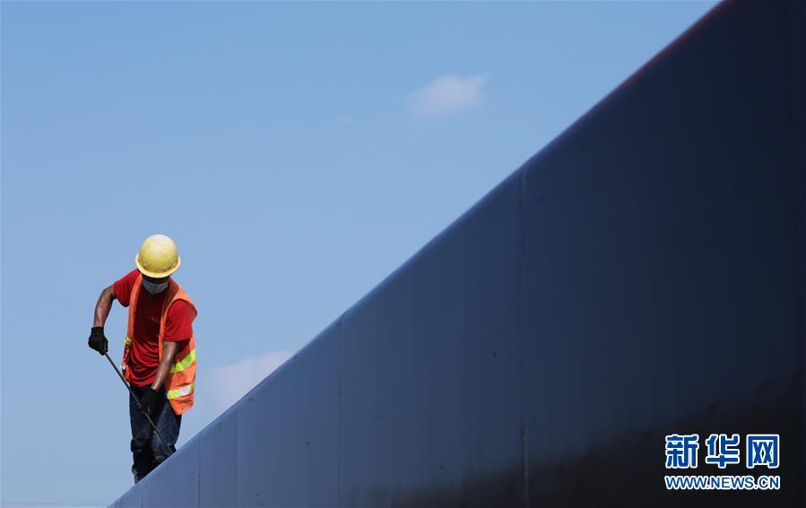 8月9日,在国道310线郑州西南段改建工程四标段,工人在进行施工作业。
