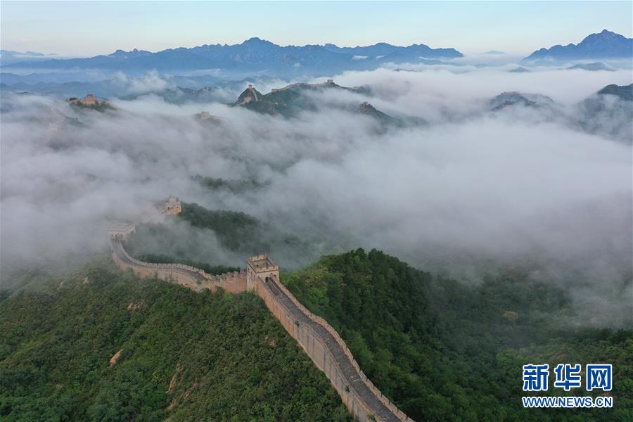 8月10清晨,位于河北省承德市滦平县的金山岭长城云雾翻滚,壮美如画。