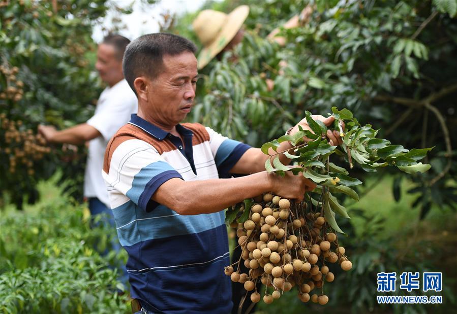 近日,广西柳州市鱼峰区白沙镇新安村等沿河村落种植的龙眼陆续开园采摘,吸引商家前来收购。