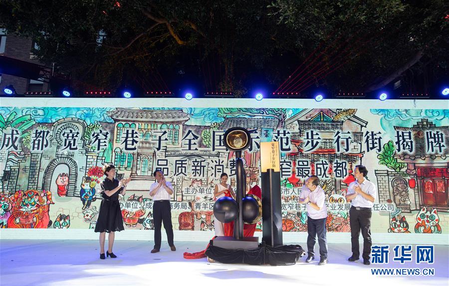 8月10日拍摄的成都宽窄巷子全国示范步行街揭牌仪式现场。 当日,成都宽窄巷子举行了以“品质新消费 宽窄最成都”为主题的全国示范步行街揭牌仪式。