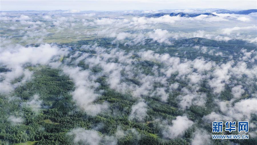 清晨,位于河北省承德市的塞罕坝国家森林公园云雾缭绕,美景如画。