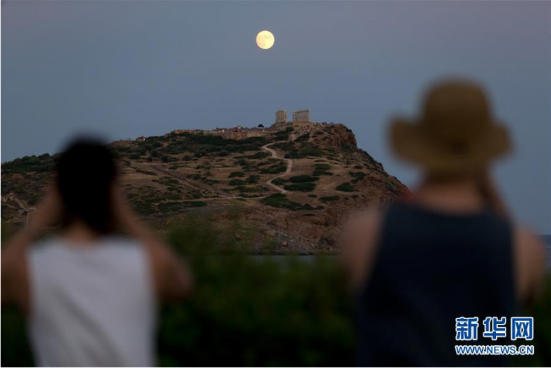 8月2日,月亮从希腊苏尼翁角的波塞冬庙上空升起,蔚为壮观。