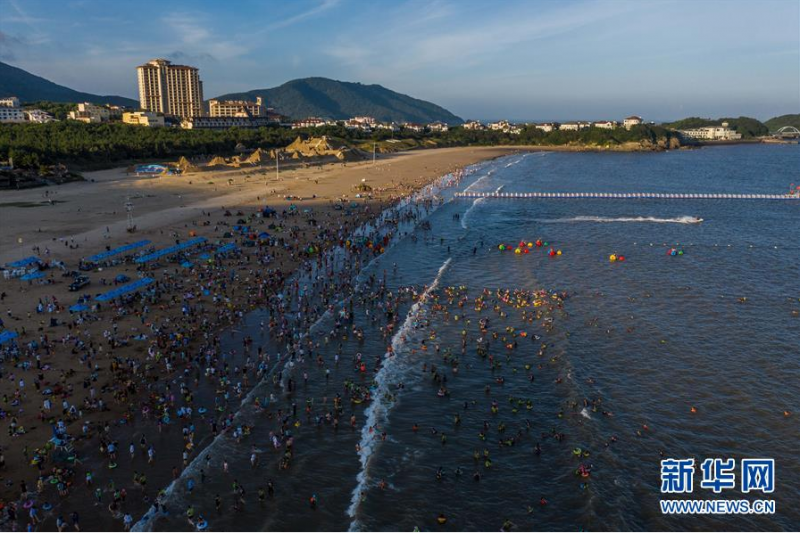 近期,地处东海之滨的浙江省舟山市朱家尖景区迎来旅游旺季,游客们纷纷前来感受碧海金沙的夏日风情。