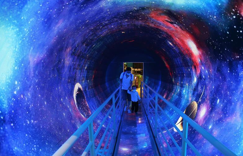 暑假期间,许多小朋友在家长的陪伴下来到当地的科技馆,参观各类科普项目展陈,动手参与科普游戏活动,在玩耍中拓宽视野、增长知识。