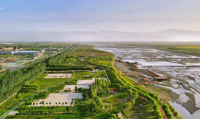 黑河流域(甘州段)树木葱郁、鲜花绽放、景色宜人。黑河,古称“弱水”,甘肃省张掖市甘州区地处黑河中游,千百年来,黑河水滋养着这片绿洲。近年来,张掖市甘州区加强黑河流域(甘州段)生态防护林工程建设,黑河流域(甘州段)生态环境明显改善,逐渐成为张掖人休闲娱乐的“后花园”。