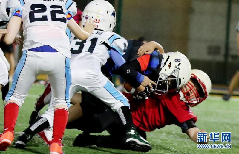 橄榄球场勇争先 小小少年动起来
