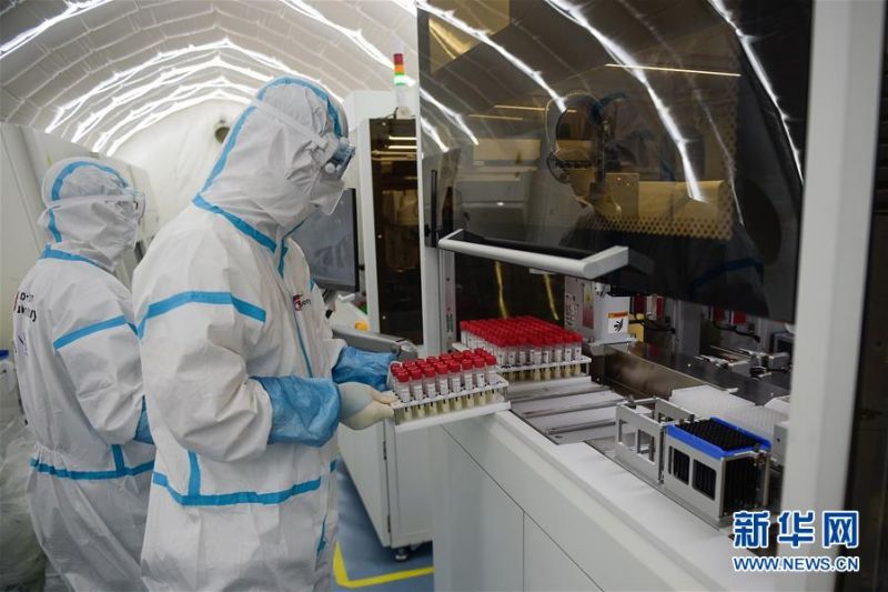 7月1日,在扩增实验室内,实验人员将核酸反应板放入PCR仪中做荧光反应检测。