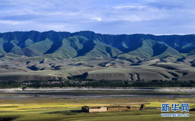 这是6月29日拍摄的位于新疆特克斯县境内的喀拉托海湖沿岸风光。 时值夏日,位于天山脚下的新疆特克斯县境内的喀拉托海湖风光宜人,景色优美。