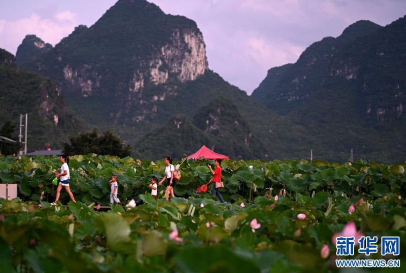 连日来,广西柳州市柳江区百朋镇万亩荷塘种植的春季莲藕喜获丰收,各色荷花竞相绽放,吸引游客前来赏玩。