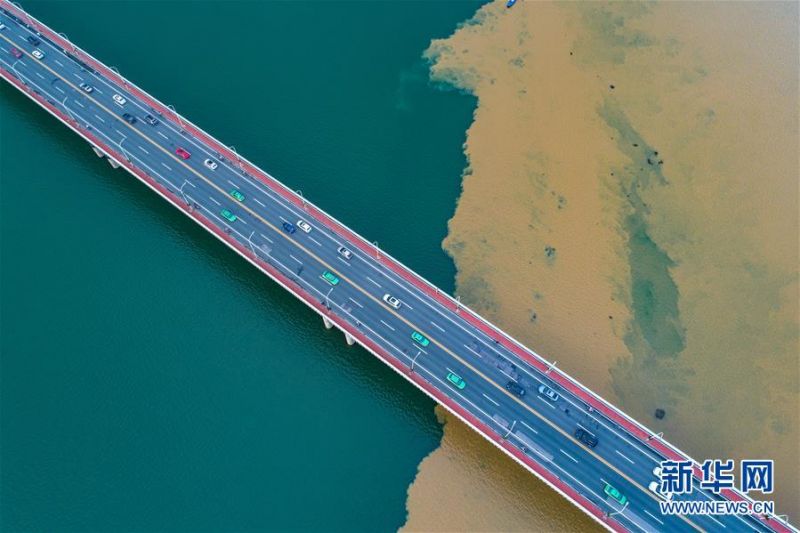 湖北襄阳:雨后汉江“泾渭分明”