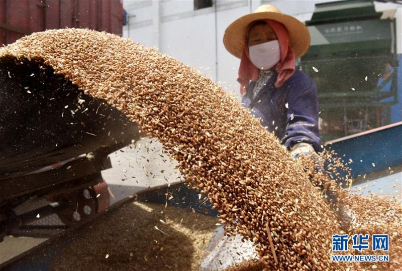 “三夏”时节,农民利用晴好天气加紧收割小麦,确保颗粒归仓。