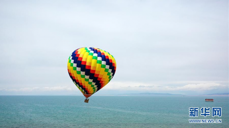 这是6月5日拍摄的青海湖二郎剑景区一角(无人机照片)。 夏日,青海湖碧波荡漾,风光怡人。