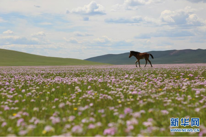 这是在扎鲁特旗拍摄的草原花海(6月5日摄)。 进入夏季,内蒙古自治区通辽市扎鲁特旗北部山地草原生机勃勃。
