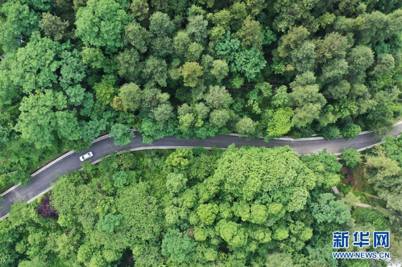 5月30日,车辆行驶在贵阳市长坡岭森林公园(无人机照片)。 夏日里,贵阳市长坡岭森林公园绿树葱郁,空气清新,吸引众多游客来此休闲游玩。
