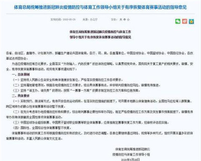 体育总局:全国性马拉松暂不恢复 中超、CBA应单独制定复赛方案