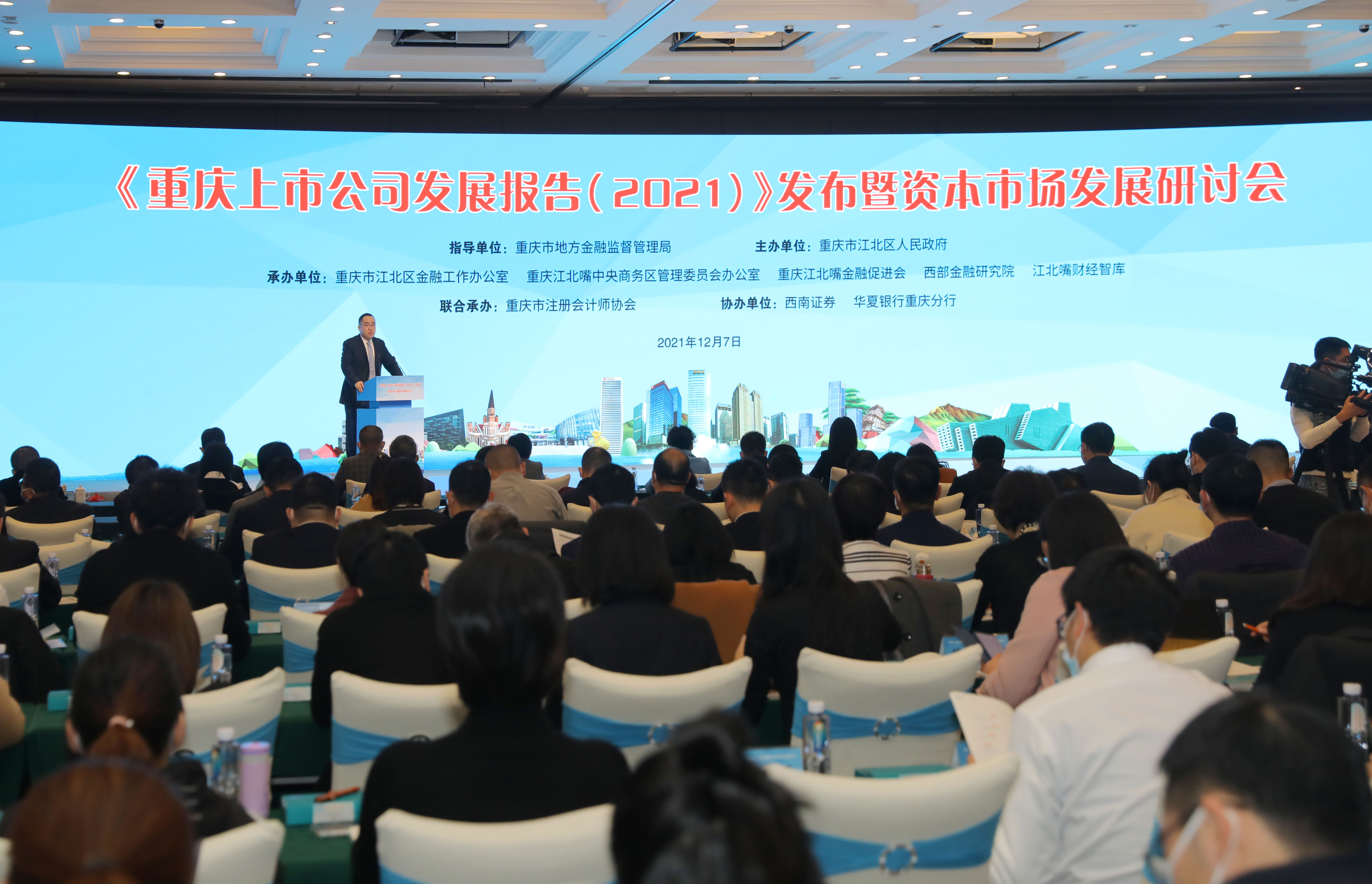12月7日,《重庆上市公司发展报告(2021)》发布暨资本市场发展研讨会在江北嘴举行。会上发布的《重庆上市公司发展报告(2021)》显示,截至今年11月末,全市境内外上市公司数量已达80家。