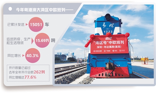 11月2日19时,随着一声汽笛长鸣,满载着通信设备、电子配件、衣帽服饰、玩具等珠三角地区优质轻工产品的X8426次中欧班列徐徐驶离广州大朗站,将于16天后抵达俄罗斯沃尔西诺。这是全球运距最长的中欧班列之一,也是粤港澳大湾区今年开出的第300趟中欧班列。