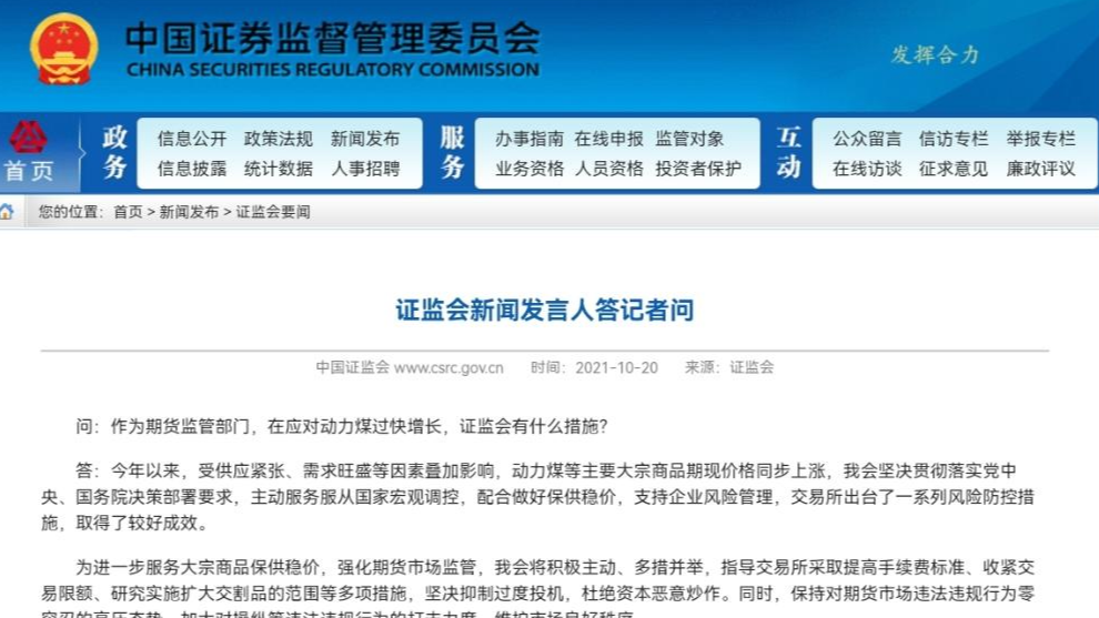 证监会:进一步服务大宗商品保供稳价