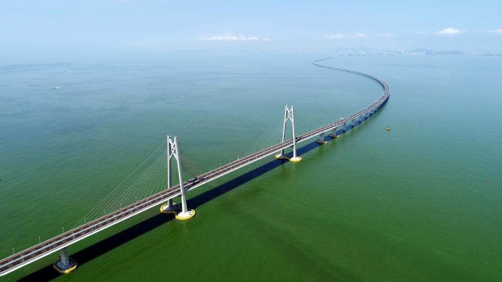 这座世界最长的跨海大桥,历经6年筹备、9年施工,数万名建设者披荆斩棘,创造了世界桥梁史上的奇迹。2018年10月建成通车后,粤港澳三地人流、车流和物流更加紧密地联系在一起,大湾区内的要素流动更为便利。