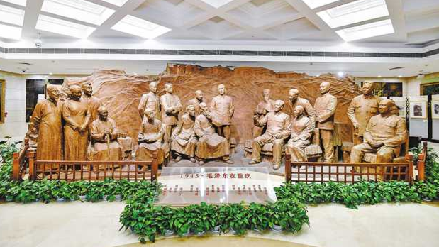 4月9日,记者走进位于上清寺的中国民主党派历史陈列馆,首先被映入眼帘的大型群雕所吸引。这座名为“1945·毛泽东在重庆”的纪念雕塑,形象化、艺术性地再现了毛泽东、周恩来与各民主党派领导人、知名人士聚会重庆,畅所欲言、共商国是的情景。
