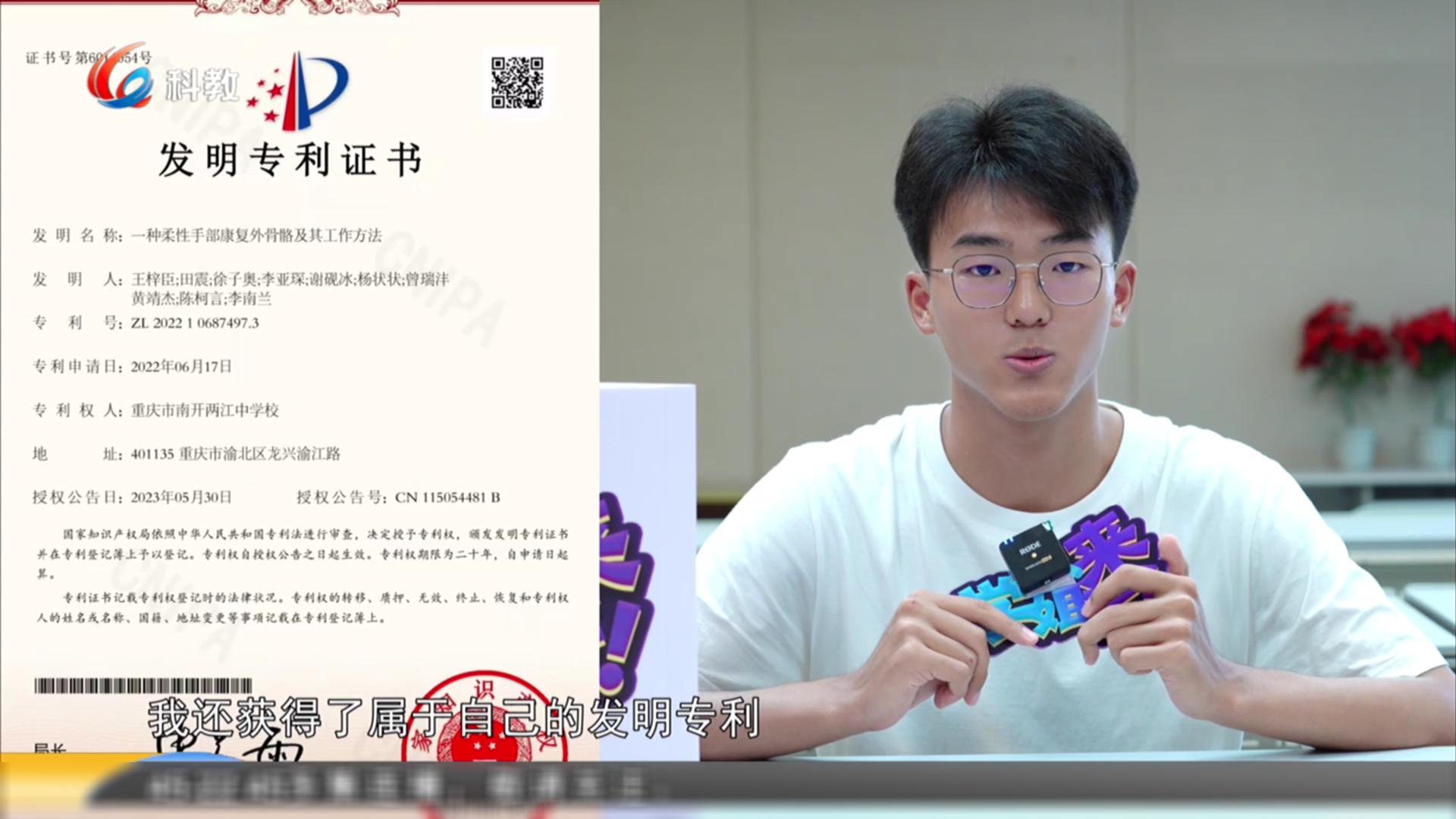 王梓臣,毕业于重庆南开两江中学,在校期间获两项专利,已被复旦大学录取。