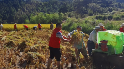 【志点滴】党员志愿者进田间 收稻带货助农增收