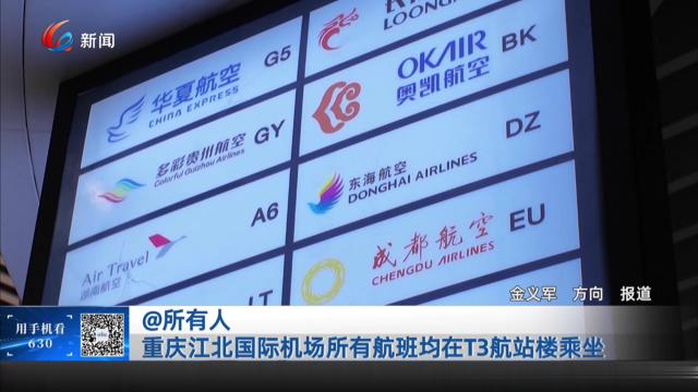 @所有人 重庆江北国际机场所有航班均在T3航站楼乘坐