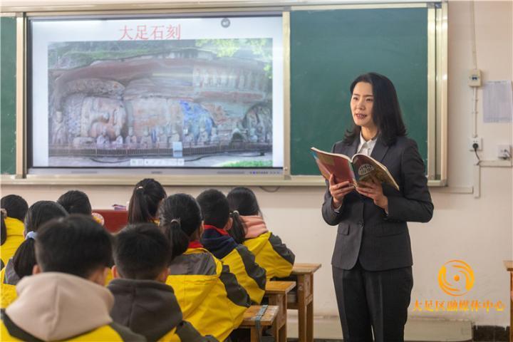 “大足石刻进入全国统编教材,有利于深化青少年对中国石窟艺术、唐宋历史和中华优秀传统文化的认识,对培养青少年世界观、人生观、价值观都具有积极作用。” 大足中学历史教师徐雪梅说,拿到教材后,她就一直在思考如何上好这一课。在接下来的教学中,她将利用本土优势,结合教材内容,让大足石刻的人性光辉照进孩子们的心田。