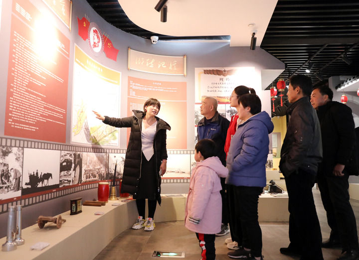 山东省东营市垦利区董集镇杨庙社区党员群众在黄河南展区历史文化馆接受历史教育。(程永锋 摄)