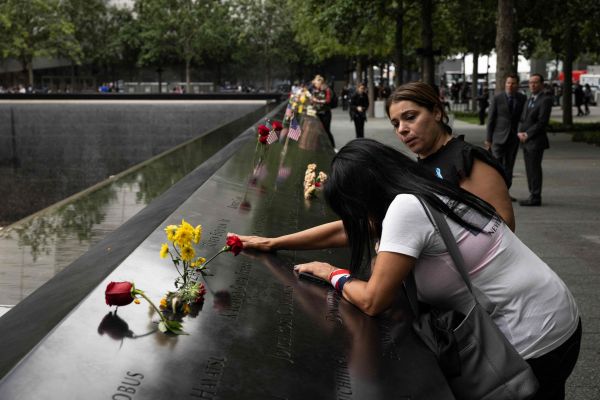 11日,美国民众在纽约“9·11”纪念广场悼念遇难亲人。(法新社)