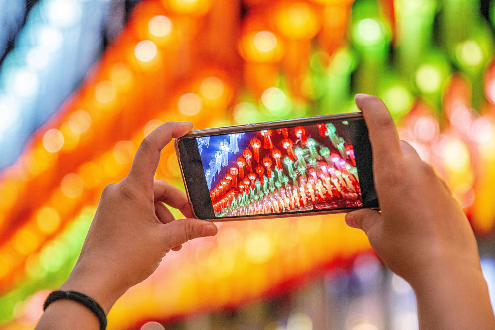 2023年11月23日,游客在泰国南奔府哈利奔猜寺拍摄灯笼。新华社记者 王腾 摄