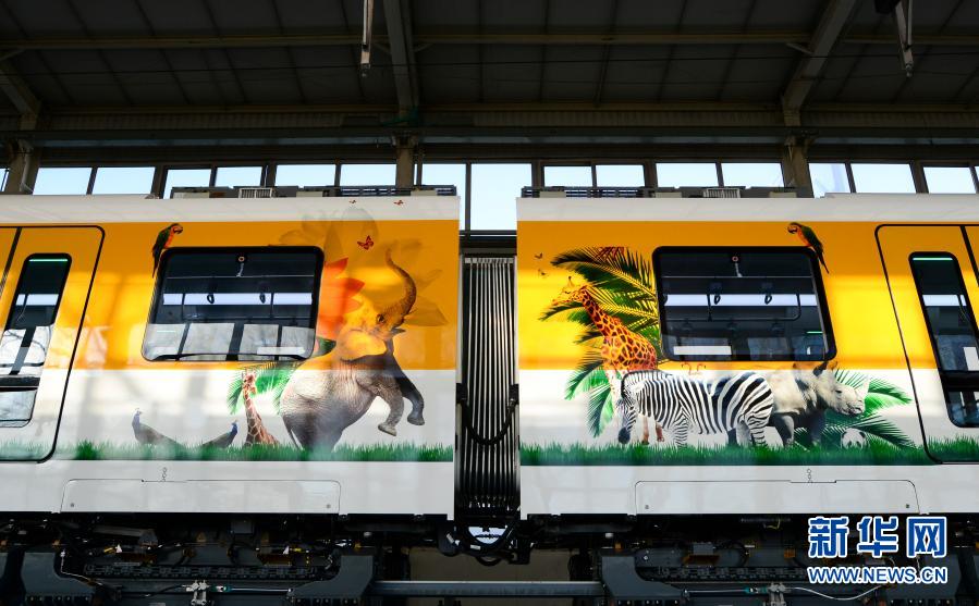 这是12月15日拍摄的将应用于广东清远磁浮旅游专线的新型中低速磁浮列车的个性化涂装。新华社发