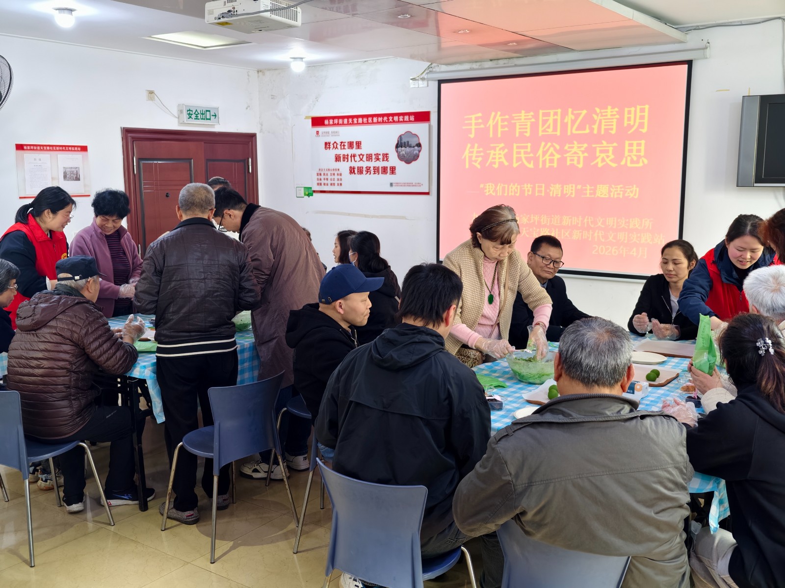 清明将至,为传承中华优秀传统文化、寄托对先祖的缅怀之情,2026年4月2日下午,“手作青团忆清明 传承民俗寄哀思——我们的节日·清明”主题活动在杨家坪街道天宝路社区新时代文明实践站开展。辖区居民齐聚一堂,以手作青团承载民俗记忆、寄托追思。