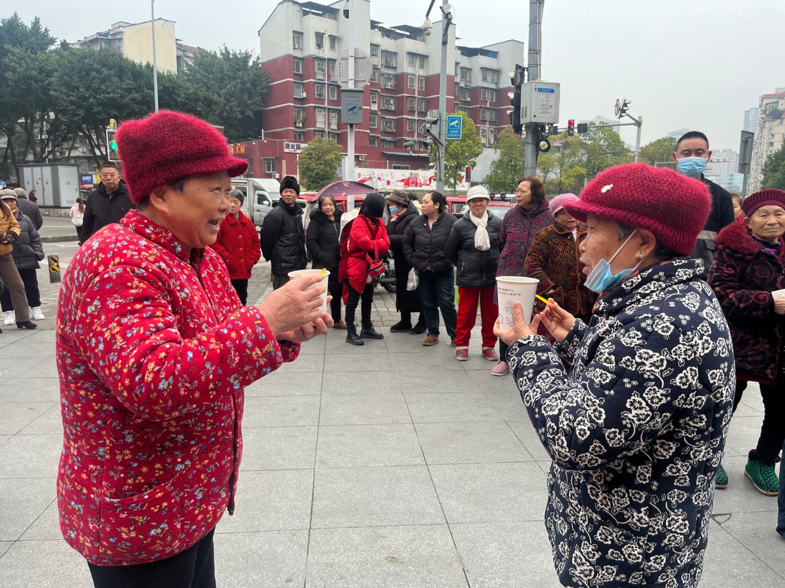 活动当天,社区工作人员与农商行志愿者早早来到现场,精心备好由糯米、红枣、红豆、桂圆等多种食材熬制的腊八粥。粥香四溢,热气氤氲,吸引了众多居民前来。志愿者们热情地将一碗碗饱含情意、热气腾腾的腊八粥递到居民手中,并送上节日的问候。居民们手捧暖粥,脸上洋溢着幸福的笑容,大家围聚在一起,品尝香甜的粥品,闲话家常,分享趣事,现场气氛温馨融洽,充满了浓浓的邻里情谊。